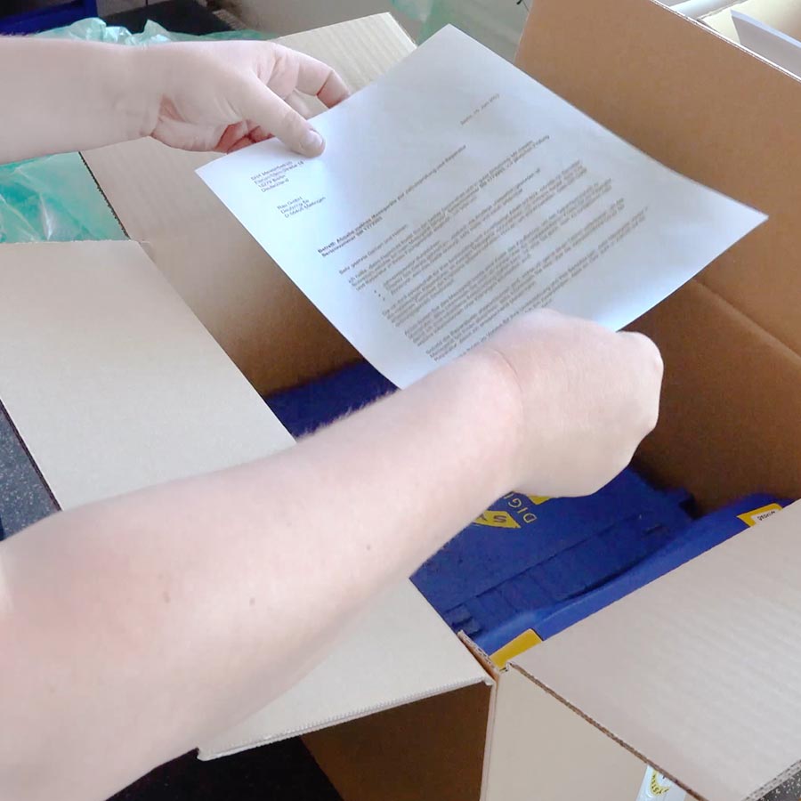 Sobald Sie diese Schritte befolgt haben und alle notwendigen Informationen beigefügt sind, ist Ihr Messgerät bereit für den Versand.