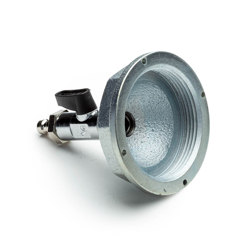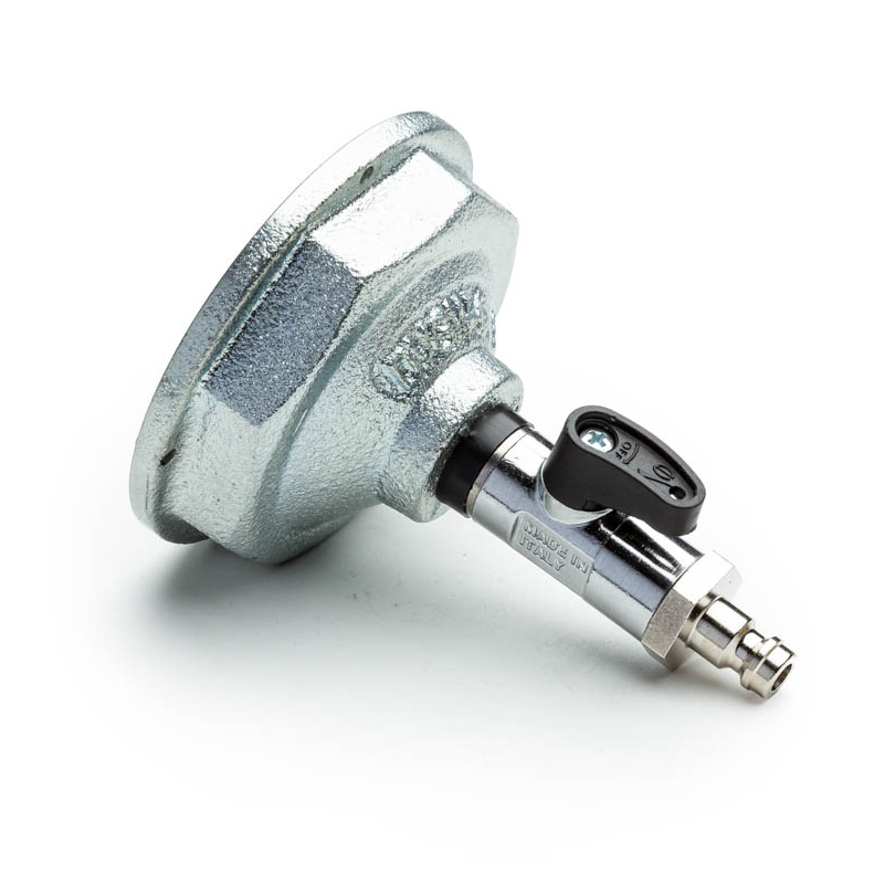 Überströmkappe mit Kugelhahn und Pneumatikstecknippel,